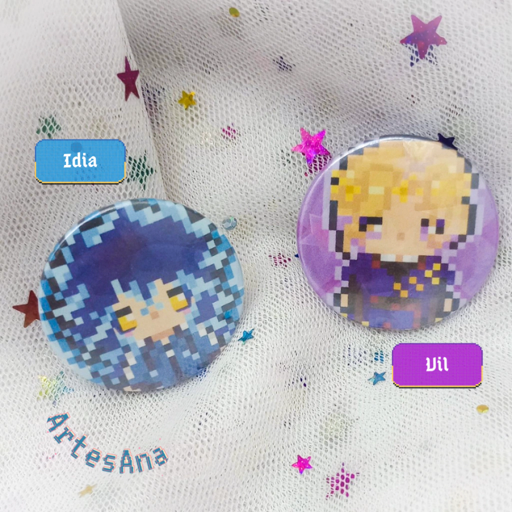 Buttons 3.8cm com nosso design original de pixel art inspirado nos personagens de Twisted Wonderland.