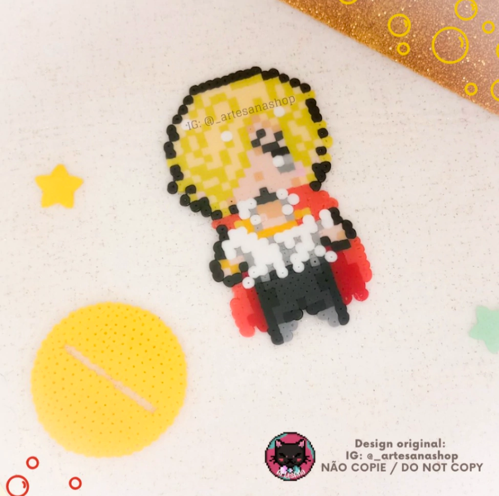 Tamanho médio do personagem em Perler Beads: 8cm X 6cm