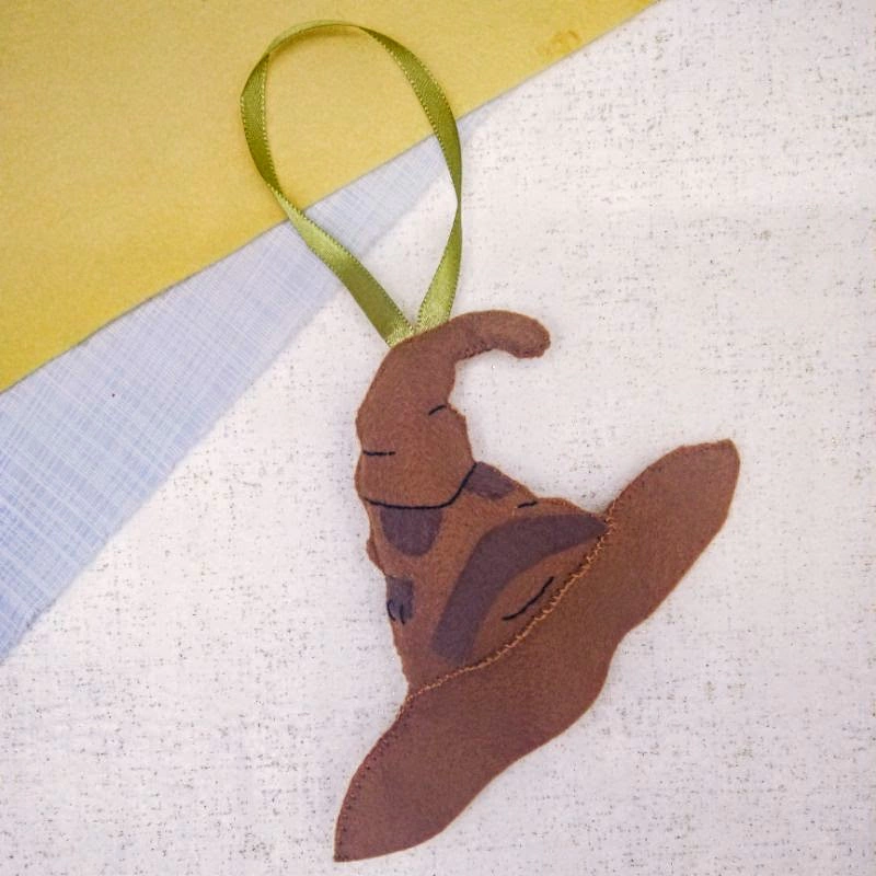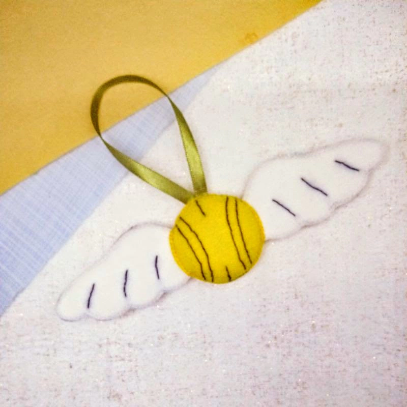 Enfeites para árvore de natal feitos de feltro, inspirados em diversos simbolos de Harry Potter, sob encomenda. O molde usado para todas as peças vem da artesã Carmela Caramella.