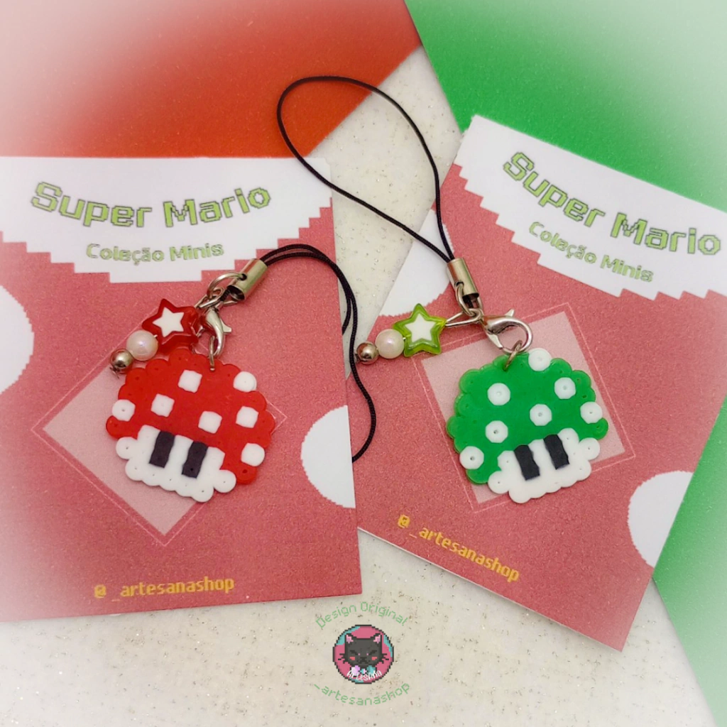 Pingentes, imãs ou brincos de anzol feitos de perler beads 2.6mm inspirado em simbolos de Super Mario, feitos sob encomenda.