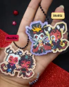 Printed and heat-sealed plastified charms inspired by the characters from Helluva Boss, with artwork in our Hana pixel art style.