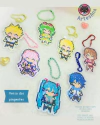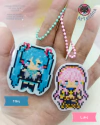 Printed and heat-sealed plastified charms inspired by the characters from Vocaloid, with artwork in our Hana pixel art style. Each side of the charms have the same image.